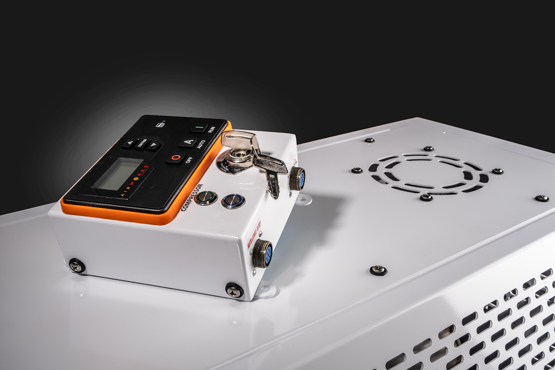 The benefits of our Auto Stop Start interface don't stop at eliminating unnecessary engine idling. This interface is equipped with a digital display that reads your tank pressure, oil temperature, and engine speed (which can be easily adjusted on the unit itself, giving you even more control over your compressor!).